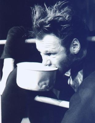„Andi Goldberger“ war an der Reihe. Wir hatten ihm einen kleinen Spot nur auf sein Gesicht eingerichtet. Er stand in der Anlaufspur, fuhr los, hob mit einem kräftigen Ruck vom Schanzentisch ab und flog…….und flog……und flog…..und flog… Es war mucksmäuschenstill im Raum – alle hatten den Atem angehalten. Schließlich setzte er eine Punktlandung und es war völlig klar, dass er gewonnen hatte. Selten habe ich ein derart ausdrucksstarkes Gesicht auf einer Bühne gesehen, selten eine derartige Überzeugungskraft im Spiel, selten eine derartige Qualität in der Darstellung. Kaum einmal einen derartig frenetischen Applaus von so wenigen Zuschauern erlebt. Noch nie ein glücklicheres Schauspielergesicht.