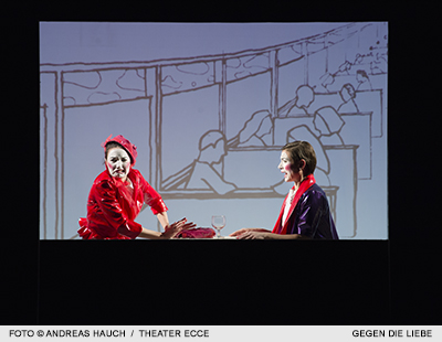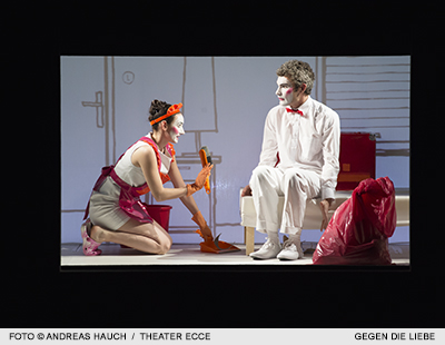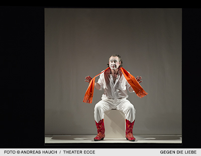 „Das Juwel der Trilogie freilich steuert das heimische Theater Ecce bei. Marie Hoppe gelingt mit „Gegen die Liebe“ eine so liebevolle wie schräge, dabei passgenau kluge Lesart der Kurzszenen in einer verblüffenden, witzig-ironischen Bildlösung, mit Schauspielern, die man selten so diszipliniert und präzise gesehen hat. Diese tolle Stunde ist das Originellste, was derzeit auf Salzburger Bühnen zu erleben ist.“